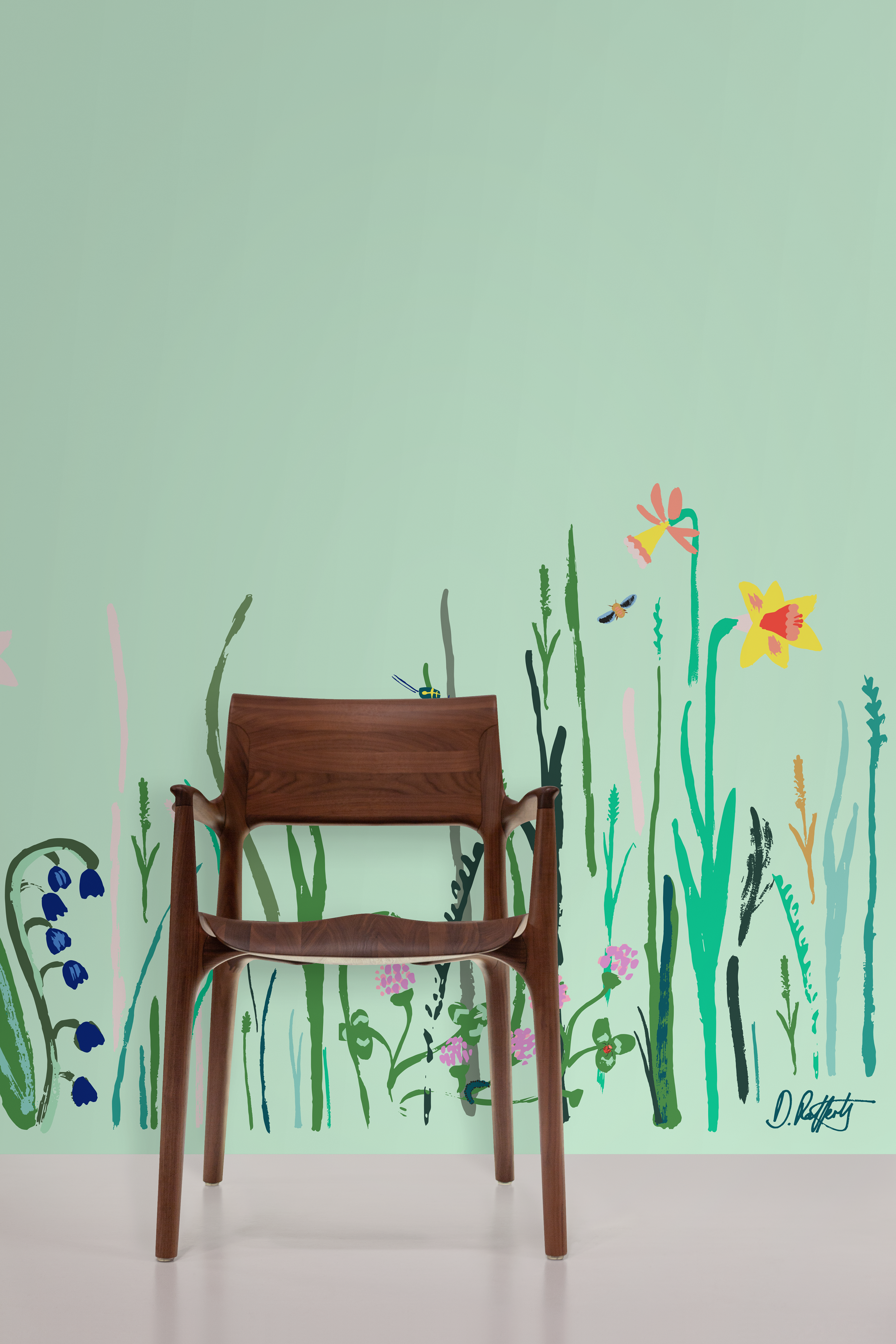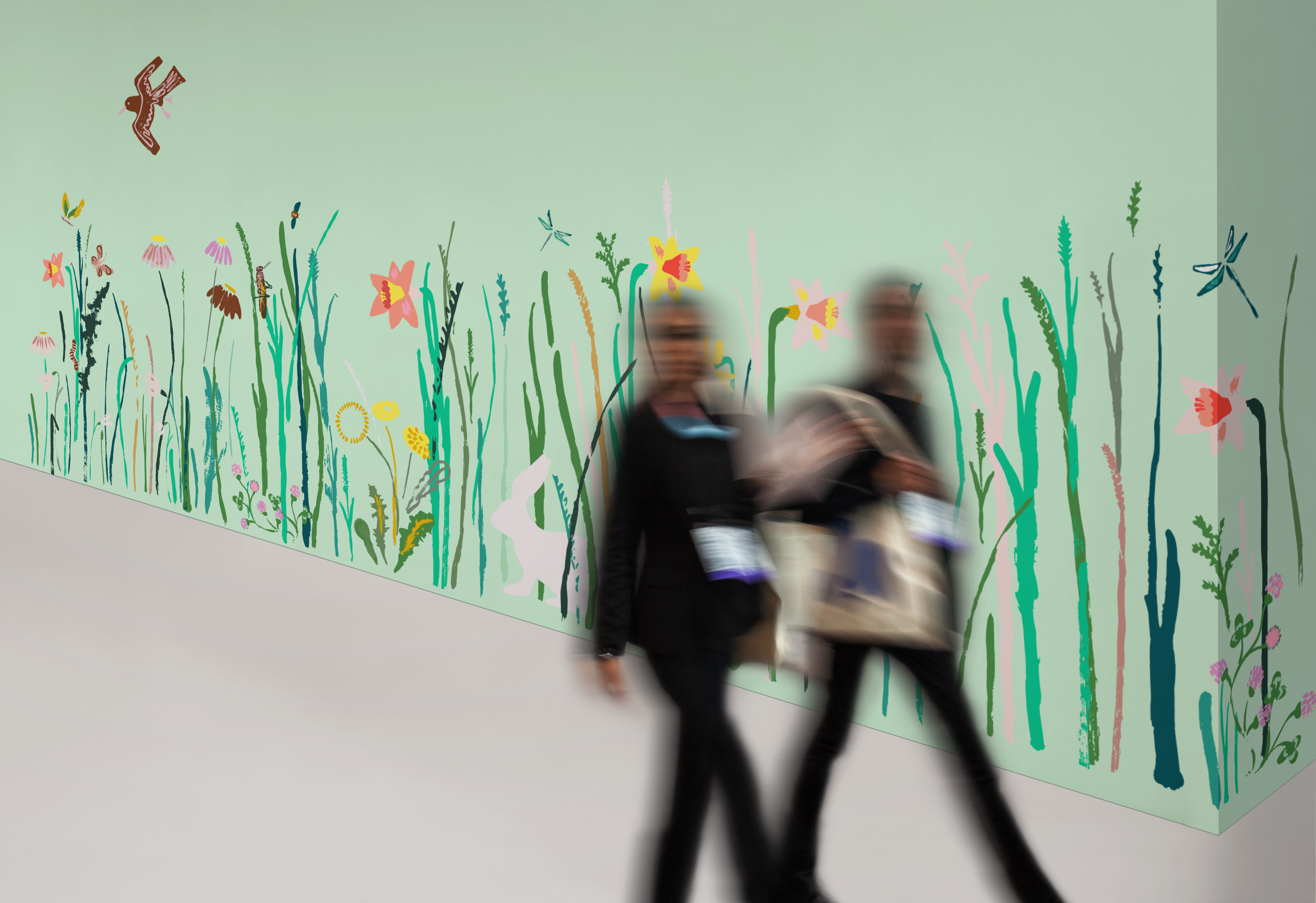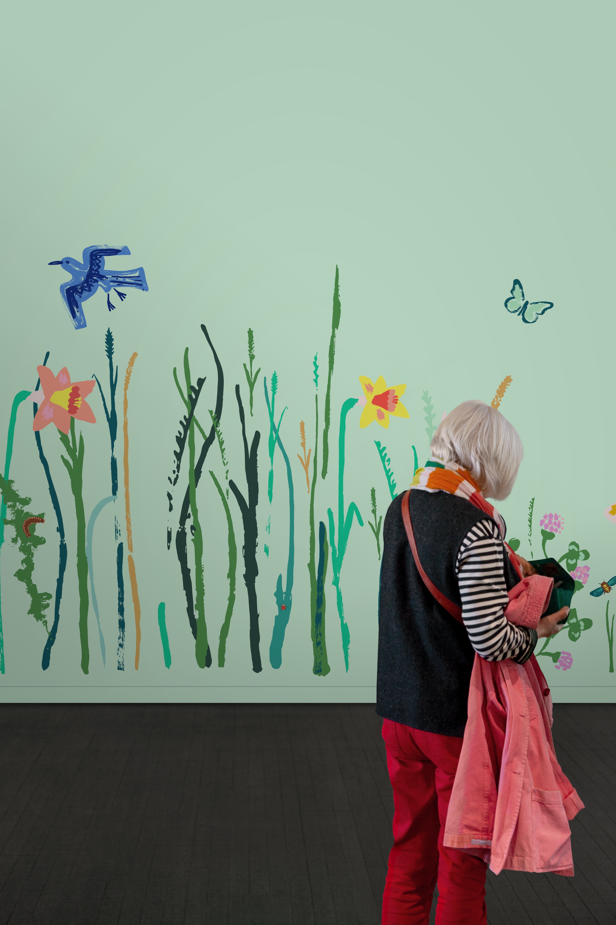 The hope would be that a returning patient might discover something new hidden in the grass they hadn’t seen before. The colours are bright and cheerful but not overpowering.